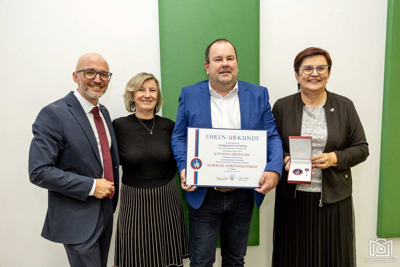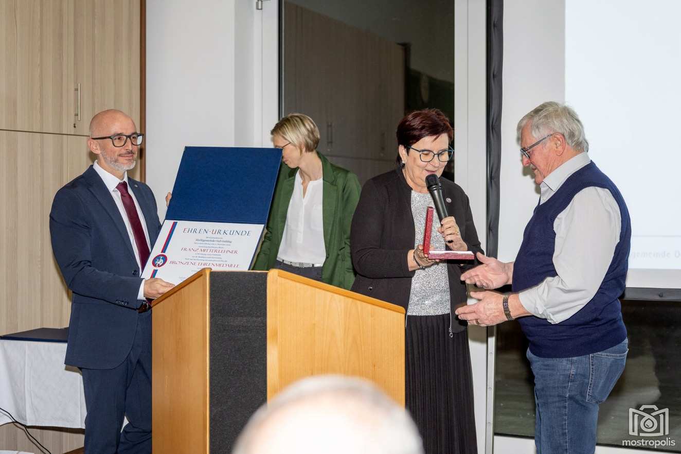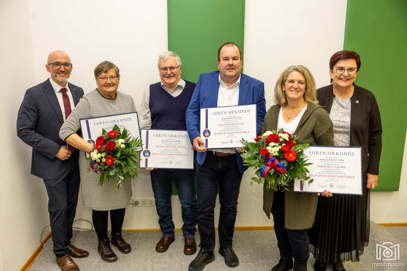 Ein weiterer Höhepunkt des Abends waren die Ehrungen verdienter Bürgerinnen und Bürger. Dank und Anerkennung erhielten Nah-&-Frisch-Kaufmann Christian Müller (entschuldigt), Senioren-Obfrau Maria Nagelhofer sowie Michael Krammer (entschuldigt) für fünf Jahre Tätigkeit im Gemeinderat. Mit dem Ehrenzeichen in Silber wurde der langjährige Obmann des MV Mauer-Öhling, Hans Eblinger, ausgezeichnet, der den Musikverein fast 18 Jahre lang leitete. Das Ehrenzeichen in Bronze erhielten Barbara Nader und Franz Mitterlehner für ihre zehnjährige Tätigkeit im Gemeinderat.
