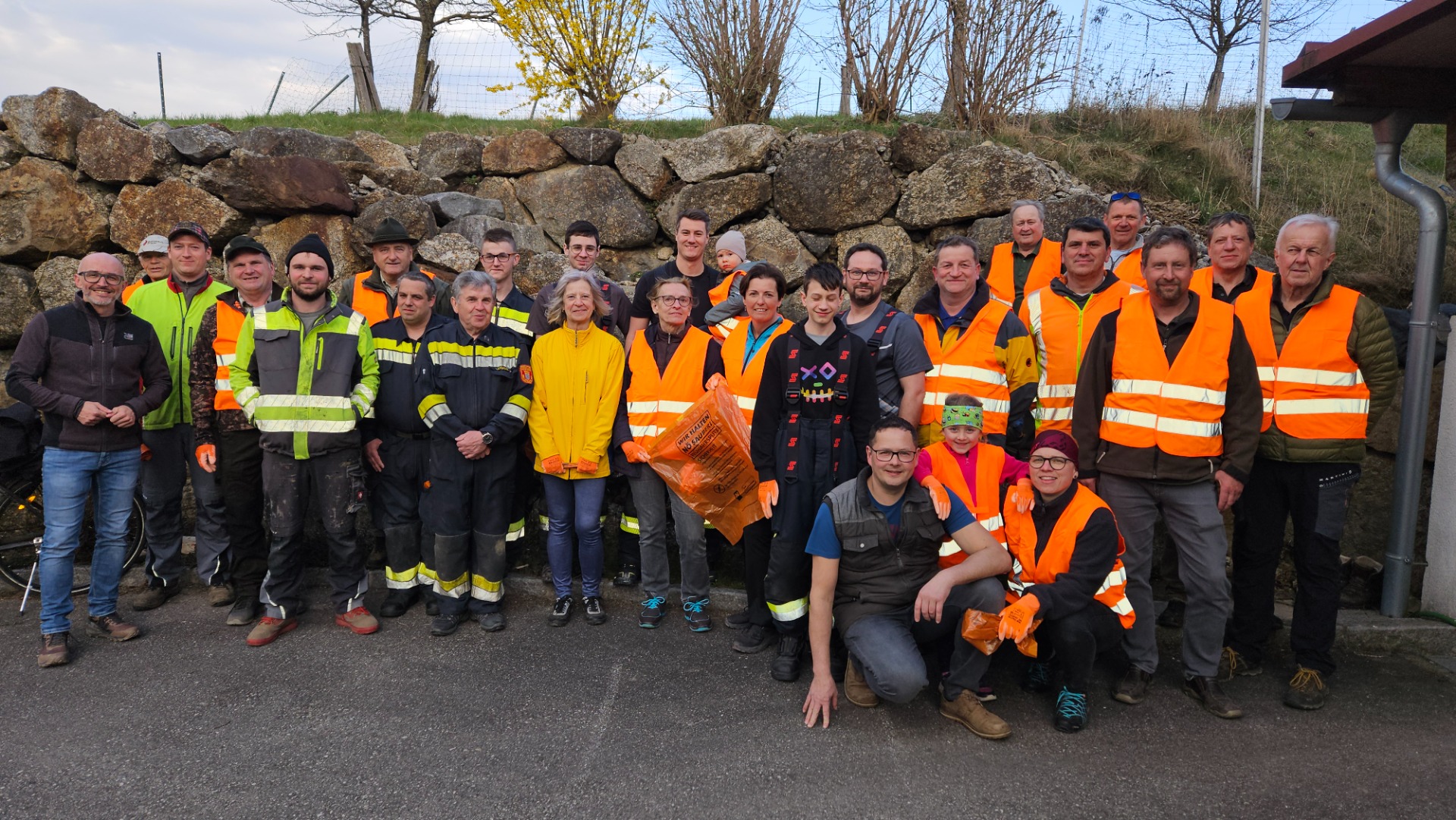 Am Haberg fanden sich rund 30 engagierte freiwillige Helferinnen und Helfer ein, um gemeinsam an der Aktion teilzunehmen und unseren unmittelbaren Lebensraum ein großes Stück sauberer zu machen. Dabei wurden zahlreiche volle Müllsäcke im gesamten Gemeindegebiet gesammelt.